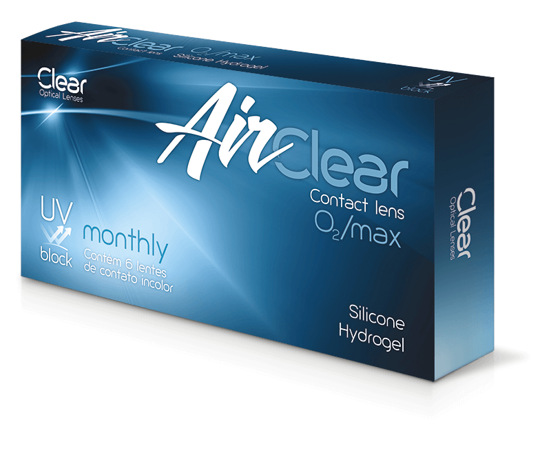 As lentes de contato AirClear de Silicone Hidrogel oferecem alto desempenho a um preço acessível. Seu material exclusivo de silicone permite alta permeabilidade ao oxigênio e conteúdo de água, resultando em excelente conforto para o uso diário, reduzindo os olhos secos e a vermelhidão. Com design de lente e agente umectante de última geração, a Clear garante que você sente o ar e não a lente.